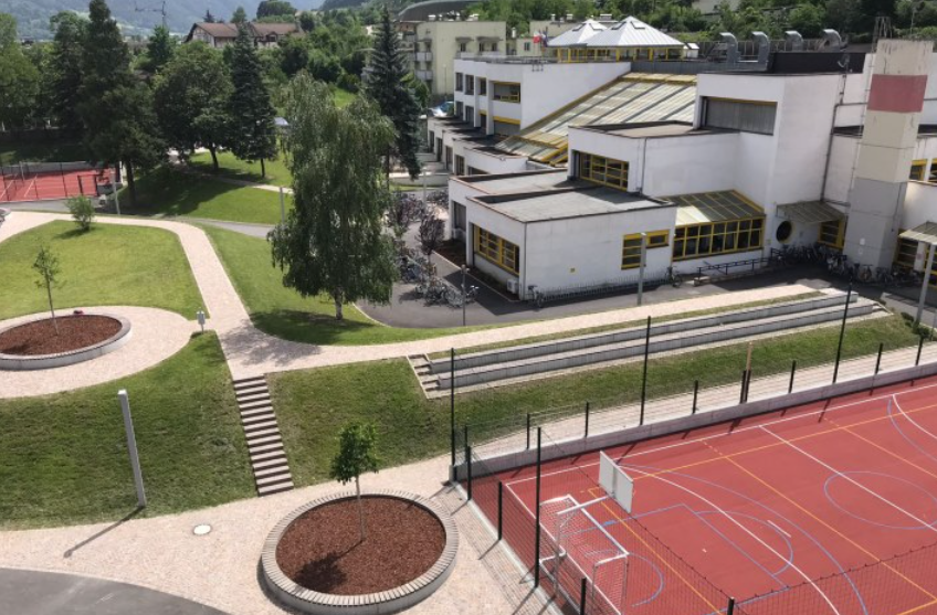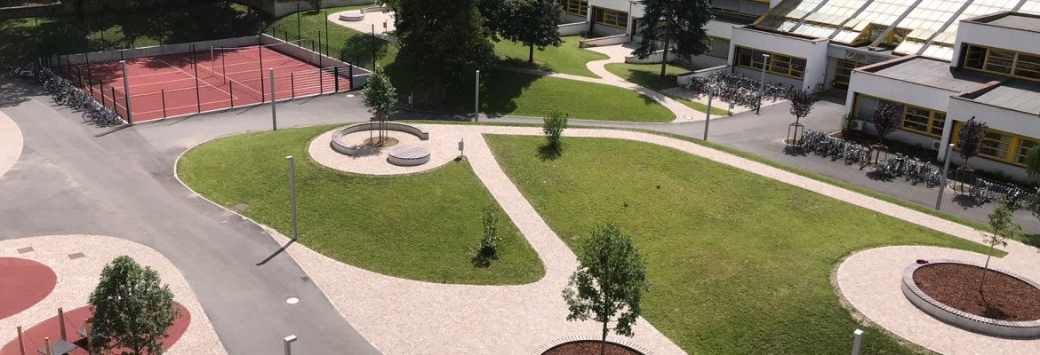 Nella zona d’ingresso della scuola primaria sono stati installati 3 attrezzi ludici. Sull’areale sono state posizionate 32 sedute nuove di forme diverse. Le rastrelliere per le biciclette sono state sostituite, in numero maggiore e posizionate in modo decentralizzato.